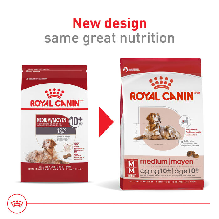 | Royal Canin Size Health Nutrition Medium Breed Aging 10+ Dry Dog Food is formulated to meet the nutritional levels established by the AAFCO Dog Food Nutrient Profiles for maintenance. |