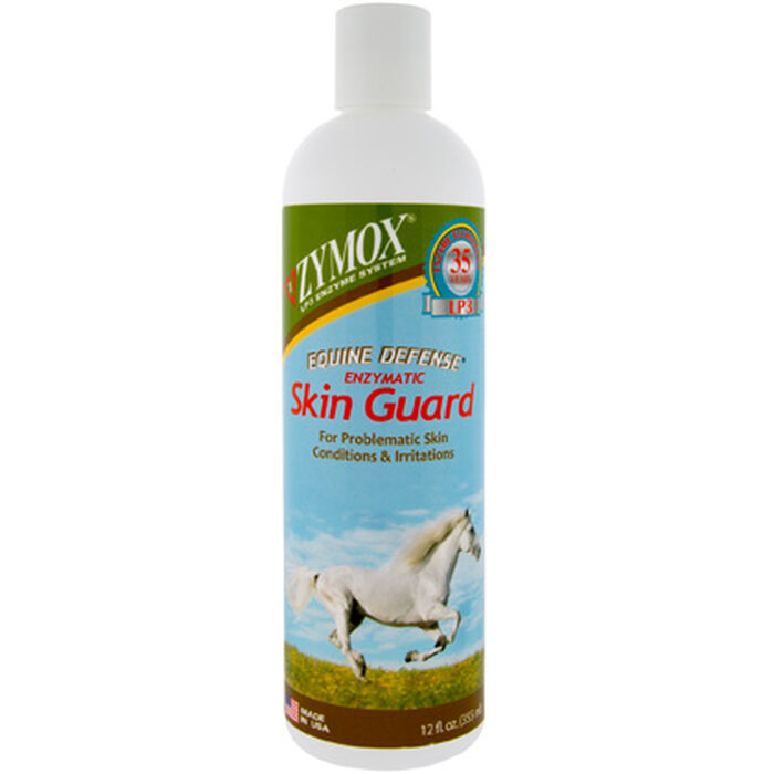 Zymox Equine Defense Skin Guard contains an LP3 Enzyme System that maintains the epidermal hydration and inhibits harmful microbes.